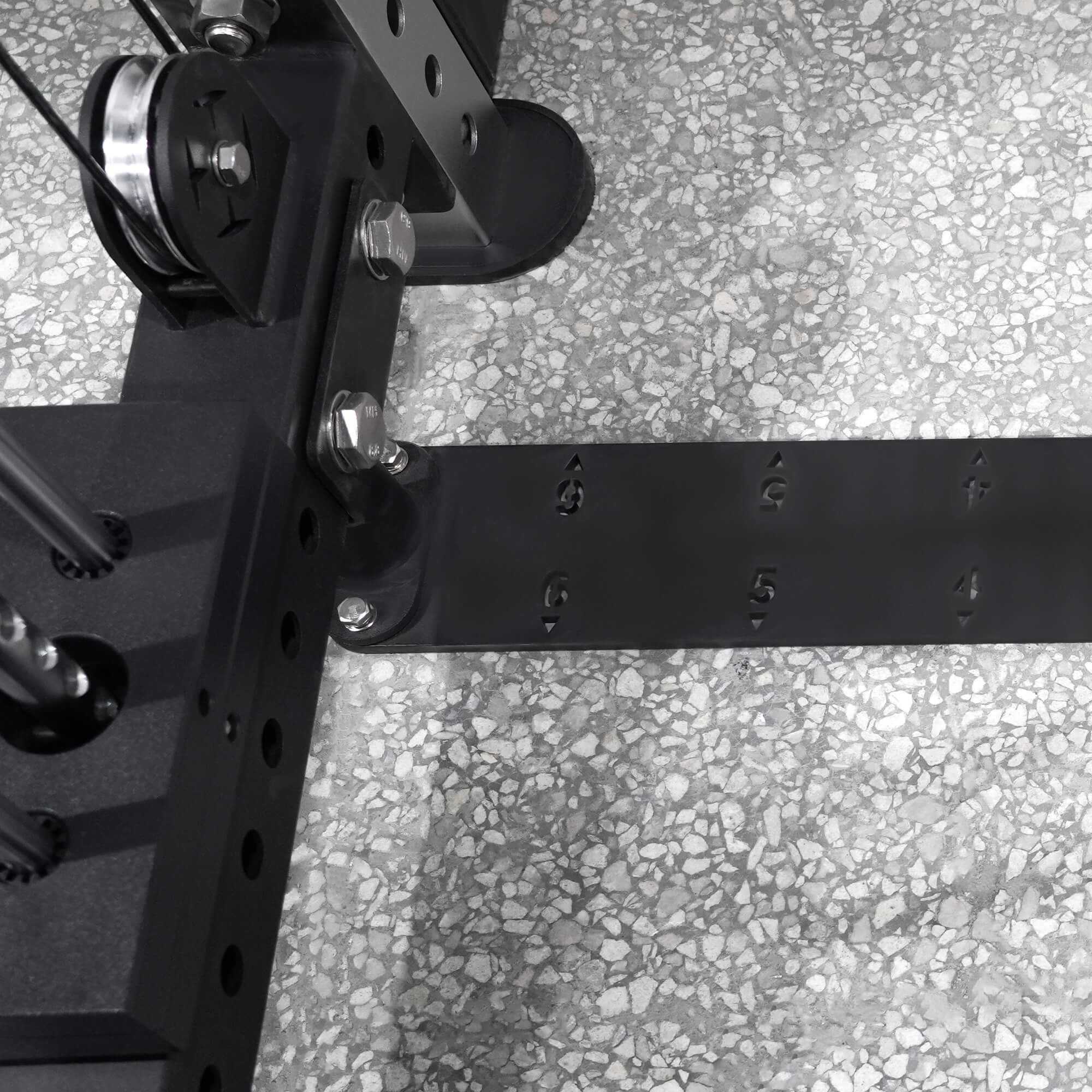 • Thiết kế dầm đáy chính xác:Được trang bị hệ thống đánh số khắc laser trên thanh dưới cùng giúp định vị ghế tập chính xác, sắp xếp hợp lý và đảm bảo tư thế tập luyện nhất quán. Thiết kế tinh tế này giúp tiết kiệm thời gian và tăng hiệu quả tập luyện, phù hợp cho cả người mới bắt đầu và vận động viên lão luyện.