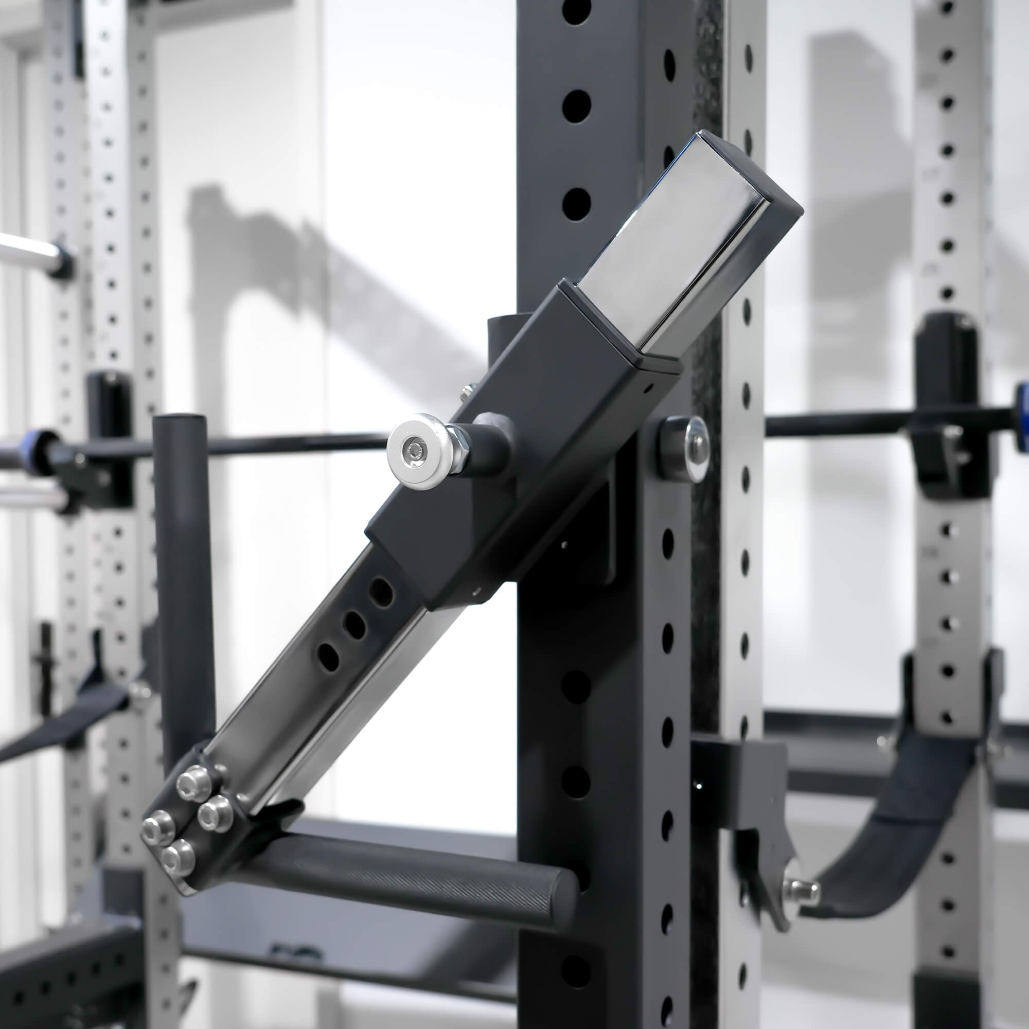 - Hệ thống giá đỡ squat dạng mô-đun: Tận hưởng sự tự do tùy chỉnh thiết lập của bạn với các kết hợp giá đỡ squat dạng mô-đun, phù hợp với nhu cầu tập luyện cụ thể của bạn.